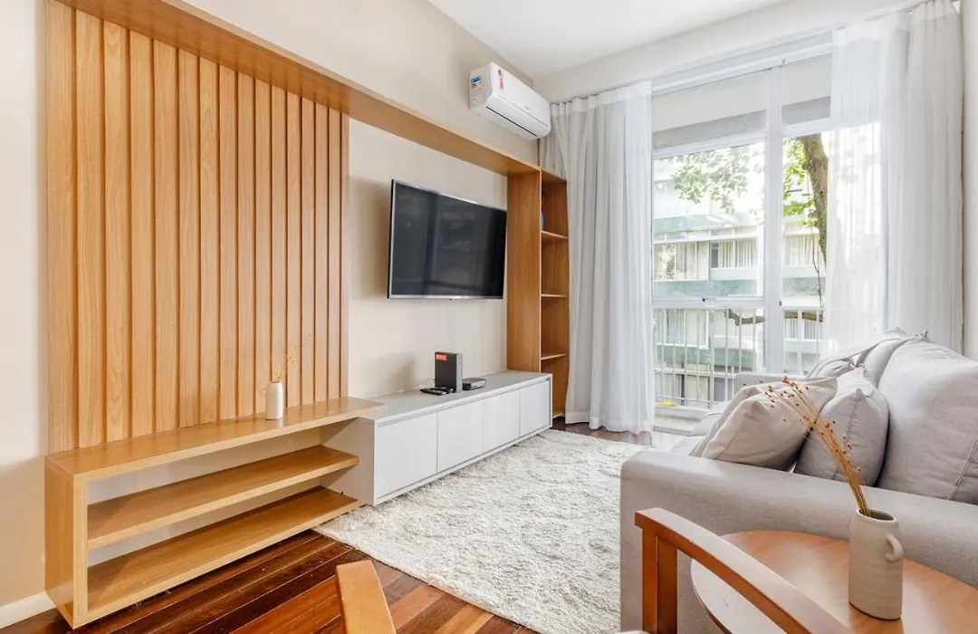 Featuring a work desk, Tabas Aconchegante Ap De 2Qtos Ipanema Ip0025 Apartment apartment is equipped with a television, ironing facilities, and conveniences like air conditioning. The property holds 1 bedroom. In the bathroom, guests of the accommodation have access to hairdryers.